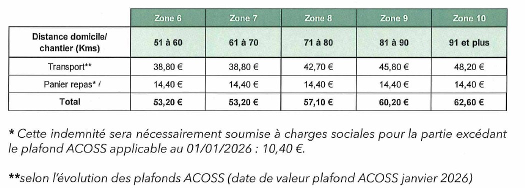 Lorsque la distance entre votre domicile et votre chantier ne vous permet pas de rentrer quotidiennement et que vous bénéficiez d'un justificatif de double résidence, vous pouvez prétendre aux indemnités suivantes :